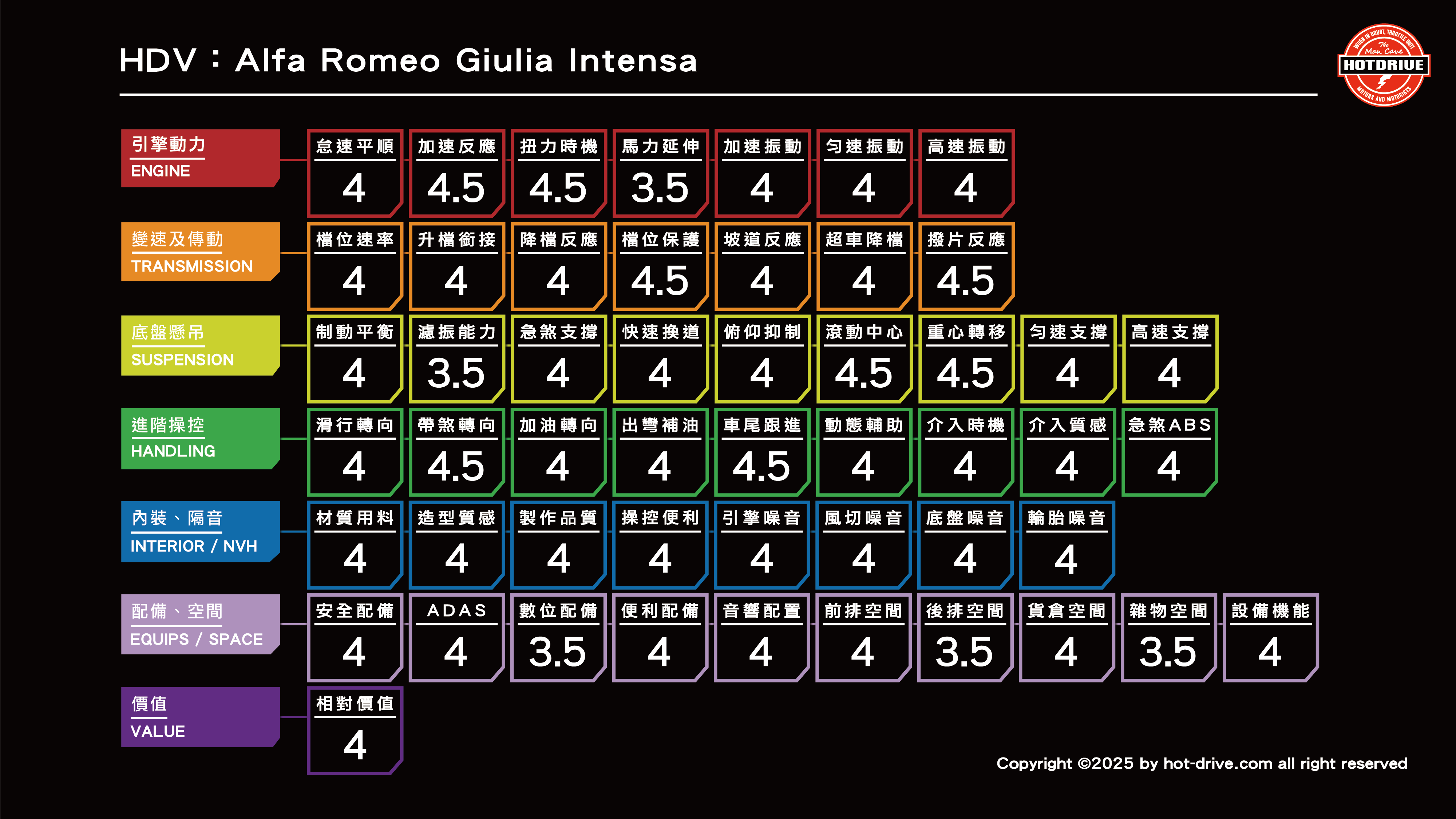 這樣的設定,註定讓它不可能取悅所有人。後排空間有限、隔音不是最靜,但當你坐進駕駛座、轉動方向盤,那種細膩又直接的回饋,會讓你瞬間明白:Giulia不屬於「每個人」,它屬於懂車的人。
