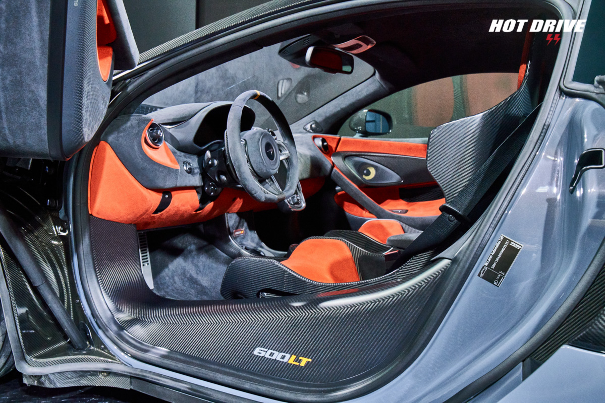 完美融合駕駛導向與輕量化特性的專屬內裝,以大量Alcantara麂皮與碳纖維材質打造出競技氛圍,搭配相同於McLaren P1™配備的碳纖維賽車桶椅,或選配超輕量碳纖維賽車桶椅,讓McLaren 600LT更像一台道路版賽車。
