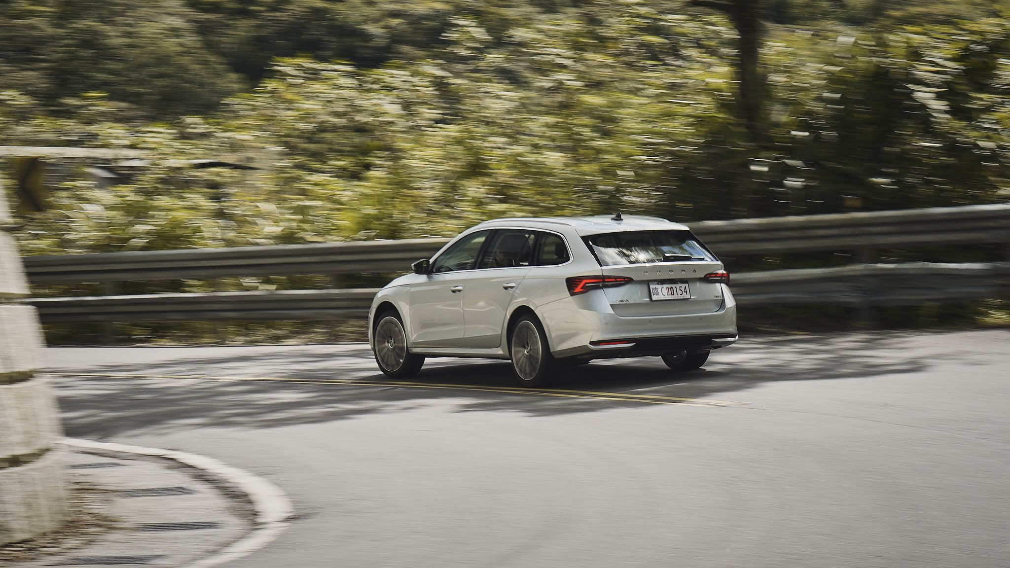 值得一提的是,它並非死板地鎖定在前後50:50,而是可以從100%前驅到近乎50:50的四驅分配,完全是視路況與駕駛動作而定。我在連續彎快速收油、補油時,明顯能感受到車尾「提早醒來」,不再只是被動跟隨,而是積極參與幫助轉向,這讓尺碼不算小的Octavia Combi在彎中竟然意外地靈活。而因為一開始沒有預期有這種感受,所以我越開越覺得開心。