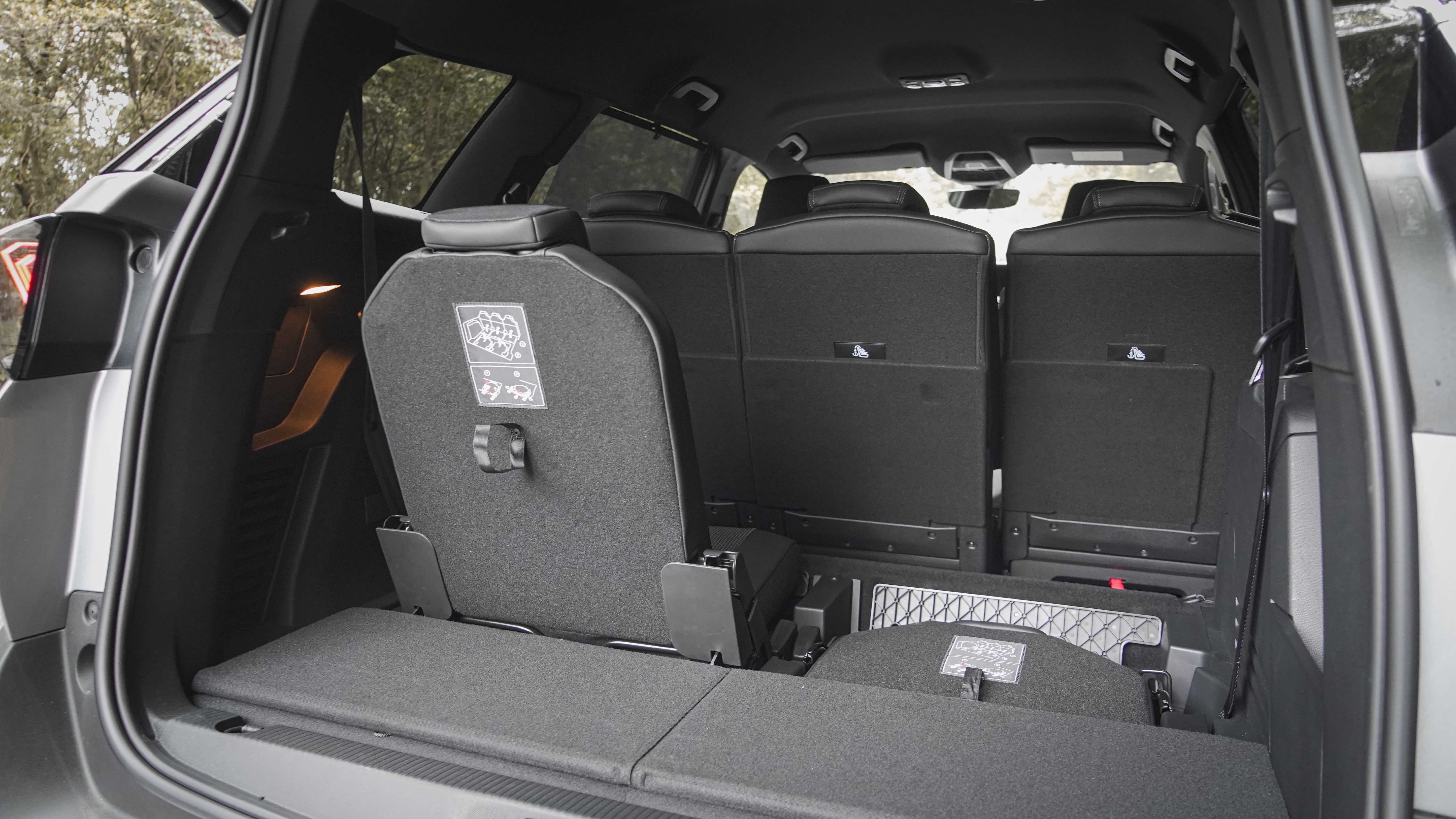 對了,我要提醒你,5008是標準的7座SUV,第三排的2張座椅設計得非常聰明,平時收納後可以提供寬敞且平整的大行李空間,加上巧妙的隔板,野營載物或是充當寵物司機都很好用,若成人乘坐第三排時,建議第二排要稍微前移,好給第三排騰出一些膝部空間。