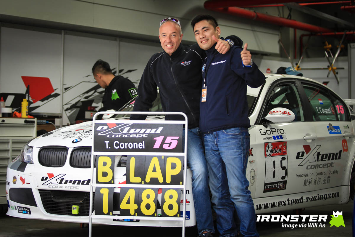 經過週六的排位賽,荷蘭籍的現役WTCC賽車手Tom Coronel跑出了打破大鵬灣賽會紀錄1:48.8的竿位成績,這使得Extend車隊全體都更期待週日的正賽,Tom到底能不能用這輛已征戰全球數十場大小戰役的白色寶馬再一次創造新紀錄。