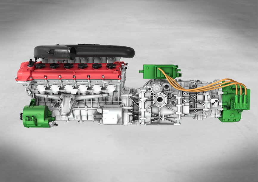 2013年量產的硬頂LaFerrari,以及2016年發佈的 敞篷LaFerrari Aperta,最值得一說的,還是那套混合動力系統。法拉利將自然吸氣V12發動機與來自F1賽車的KERS能量回收系統組成混合動力系統,其目的並非為節能減排,而是想獲得更高效的運動性能。法拉利已確定要用V12混合動力技術來挑戰更嚴苛的環保標準。