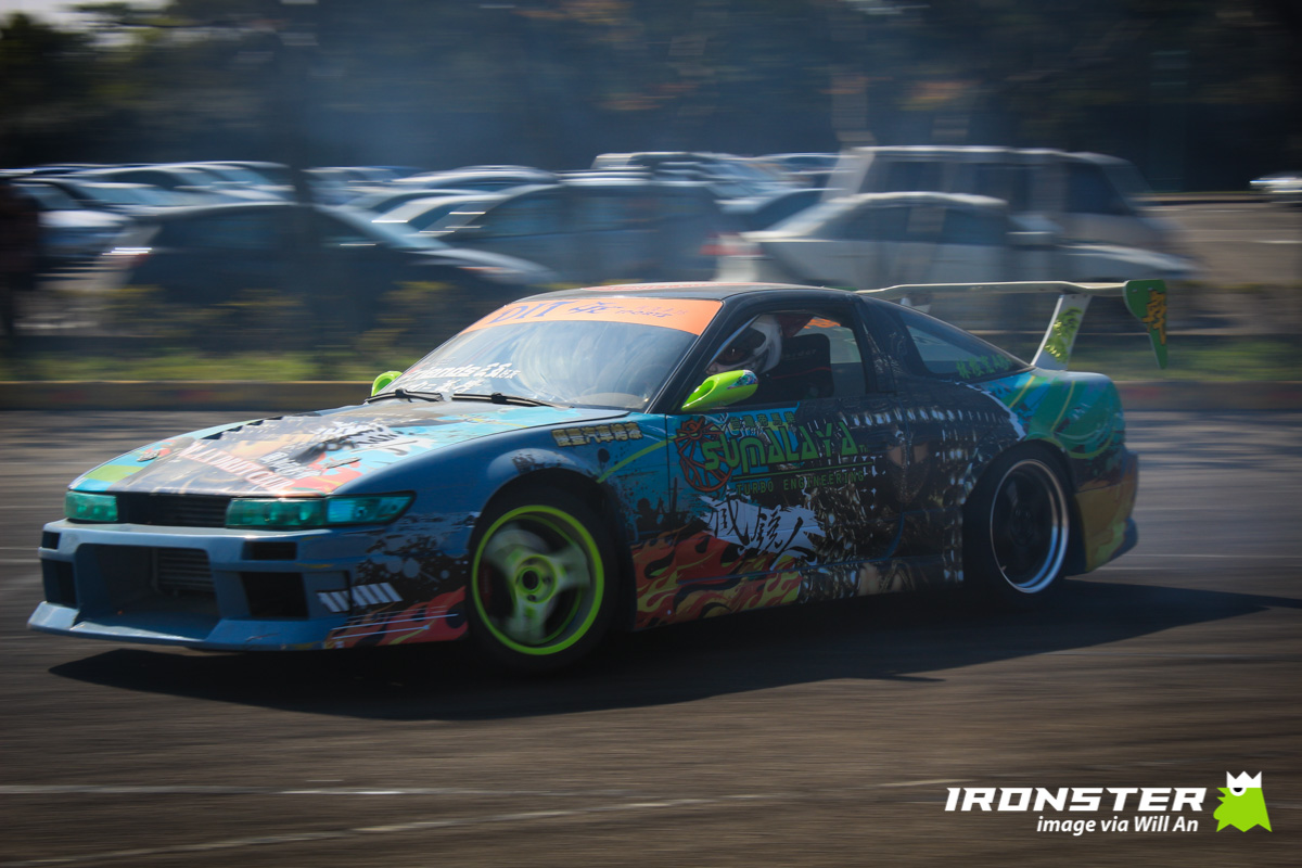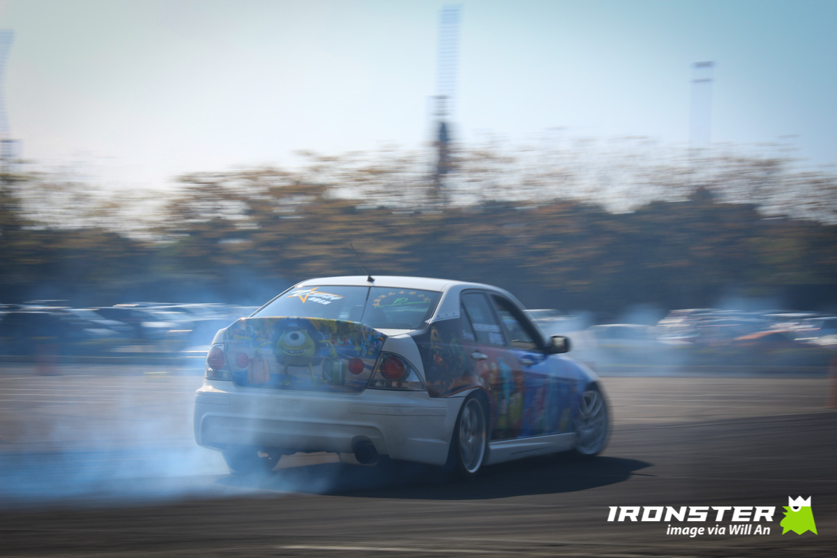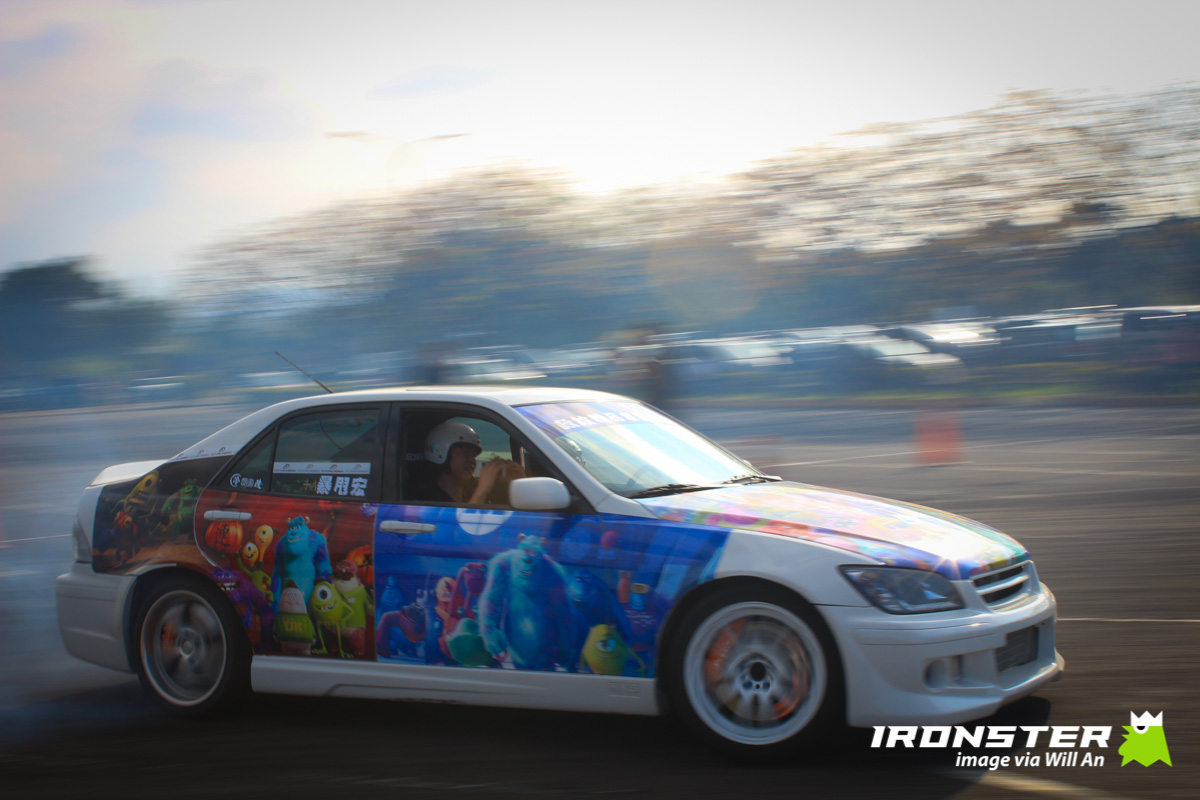 而說到台灣的漂移起源,大概只比房車賽運動晚幾年而已。在十多年前就投入甩尾運動的黃立綱(布袋戲國寶大師黃俊雄的孫子),應該算是台灣第一代的甩尾車手。而他所創立的『慣性橫移甩尾團隊』,在台灣目前有十多支大小甩尾車隊中,應該算是這十多年來投入台灣甩尾運動最多的車隊之一。就像這次在六福村大停車場所舉辦的這場走行會,就是由『中華賽車競速及競技協會』與『慣性橫移甩尾團隊』聯手舉辦的。而這個『中華賽車競速及競技協會』的盧理事長本身並不是賽車手,只是單純喜歡大家在一起玩車的感覺,所以常年來他就算不時自掏腰包,但他還是致力推廣台灣各種漂移賽事,像是舉辦多年的大江盃漂移賽等等。