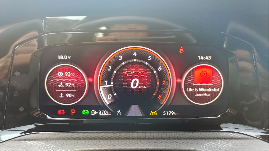 回到正題,眼前的八代GTI還是過去我們熟悉的GTI嗎?水箱罩跟尾門的GTI飾徽、椅背上的格紋織布與有點刻意的GTI字繡(對了,我試駕的還是經典駕馭版…算了,沒人在意),設計師好像深怕我會忘記這是GTI…。而事實上設計師是對的,剛坐進車內,看著五光十色的數位儀錶、佈滿指紋的觸控板與玩具般的排檔桿,我確實不知道它跟我認識的Golf GTI有什麼關聯?
