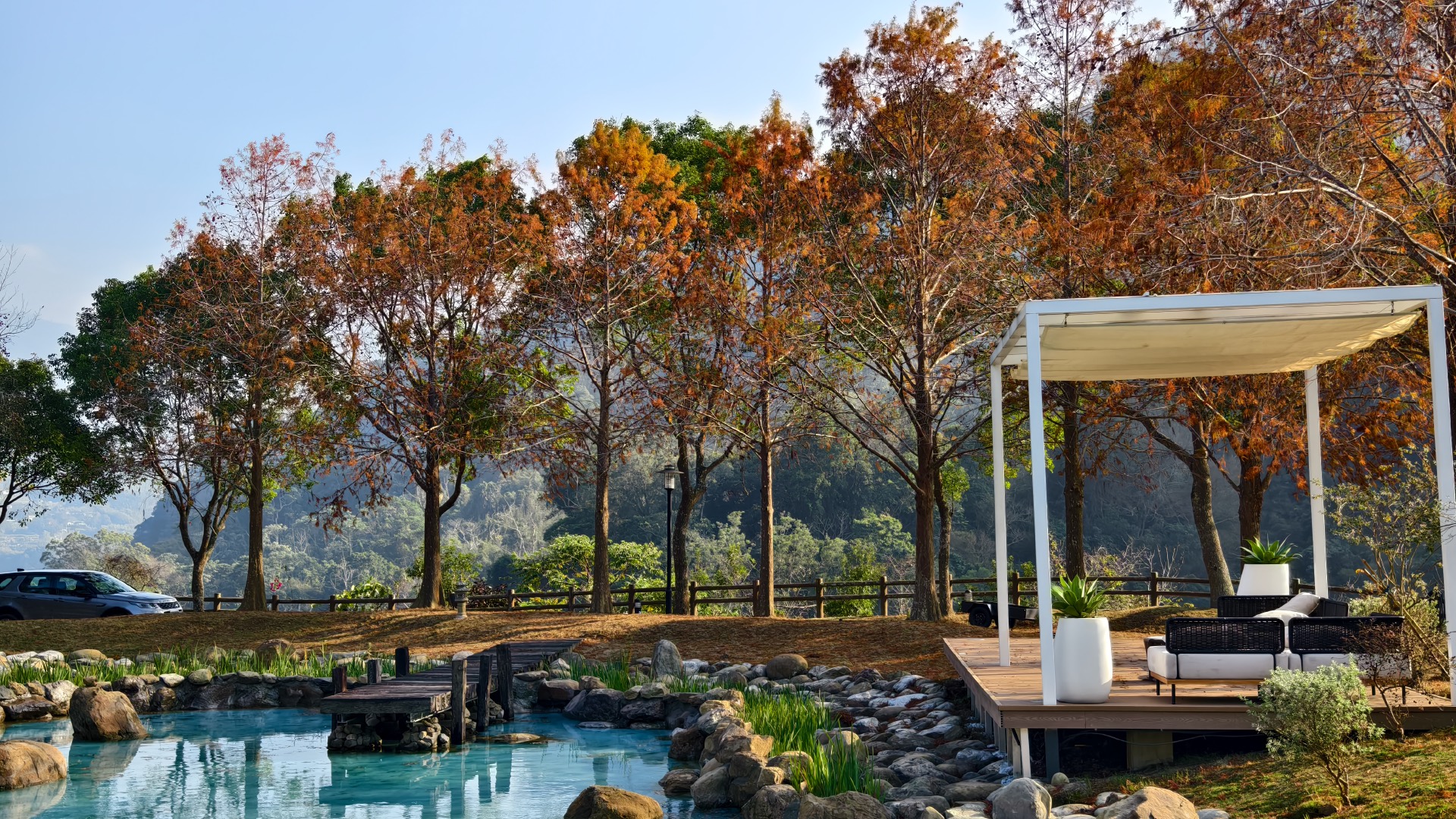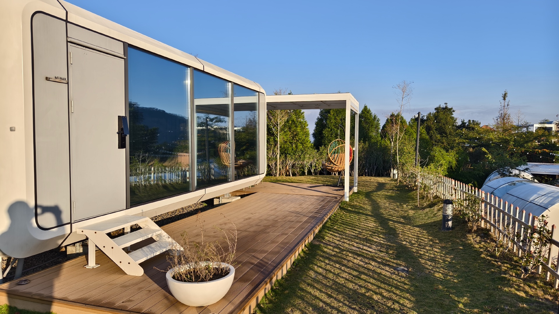 本車試駕場地選在苗栗大湖新開業的野苒莊園,該地遠離塵囂但不偏僻,營地坐落在起伏的山區,日出日落都有不同風情,營區佔地頗大,園內景觀與植栽看得出細膩與用心,住宿方面採用近期頗為流行的膠囊套房,房間內比照星級飯店佈局,冷暖空調與衛浴、陽台一應俱全,某些房型還自帶天幕,電動開啟天窗簾幕,躺在床上便能欣賞星空,是一種蠻特別的體驗。