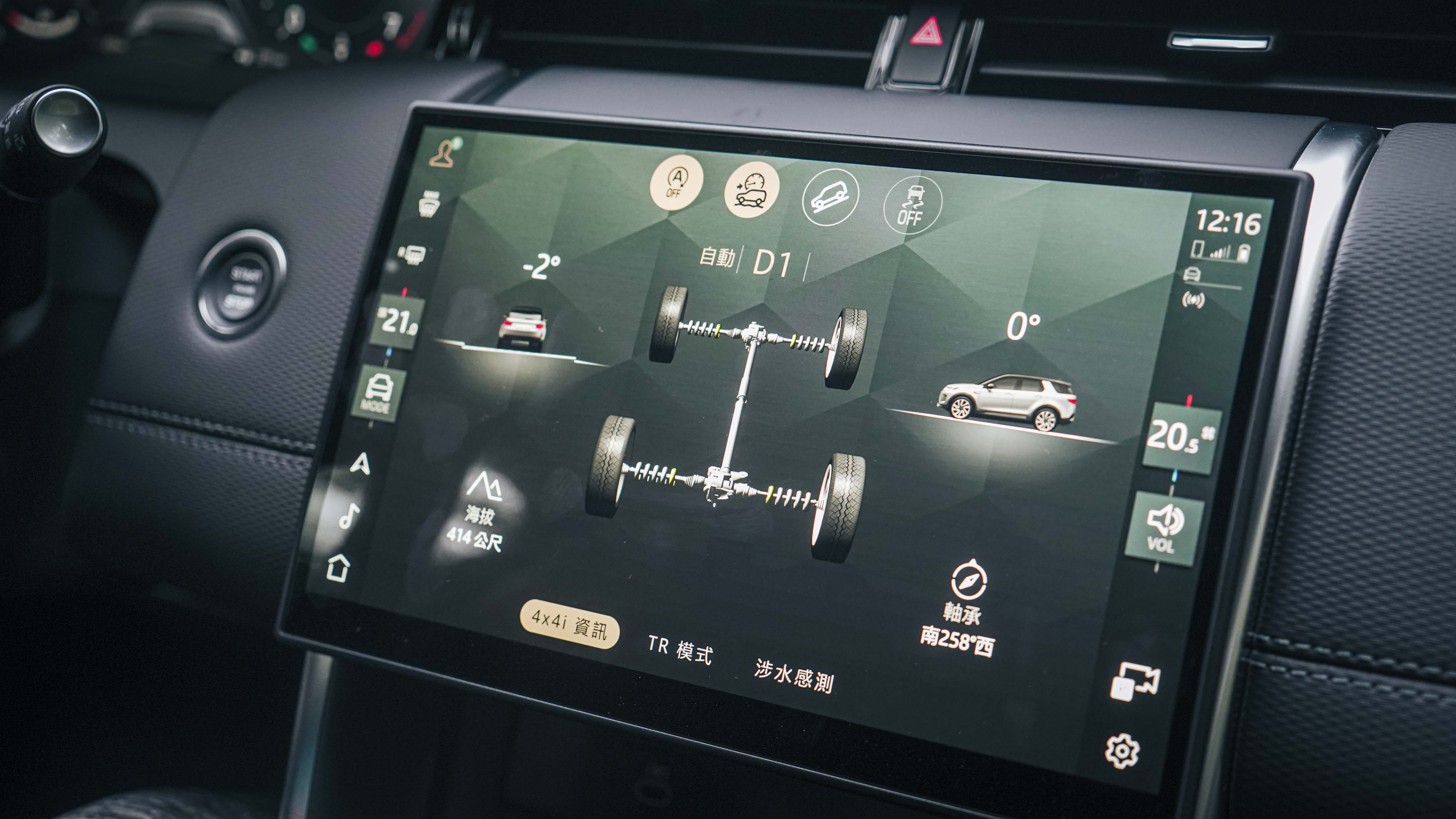 1.本車搭載JLR當家的2.0升Ingeniun渦輪引擎搭配48V BSG輕油電,試駕的P250擁有249hp與37.2kgm的輸出,搭配的是ZF出品的9AT變速箱,除了變速箱帶有S模式外,本車並無Sport之類的On Road模式可選,Off Road部分則配備當家的第二代全地形系統,可以選擇Auto或是礫石地、泥地與低摩擦等惡劣地形模式,越野時可切換ATPC讓車輛自動調配,下坡時則附有HDC陡坡緩降功能,根據當天2小時左右的林道越野體驗,Discovery Sport的越野性能自是無需贅述,關鍵是操作很簡便,小白也能輕上手。