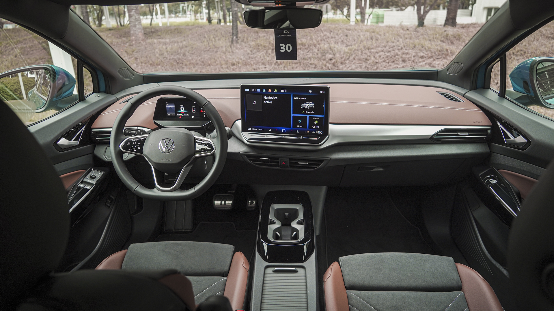 對我而言Pro S才是首選第二天開的是ID.5 Pro S版本,後輪驅驅286hp動力,170萬元左右的售價,外觀上以霧銀飾板代GTX的黑化,內裝為棕黑色佈局,比起GTX的麂皮內裝,我覺得Pro S的總體鋪陳更加高雅,配備上少了玻璃車頂與Harman Kardon音響,但矩陣LED頭燈與完整的Level2等一樣不缺,車重還輕了一百多公斤。