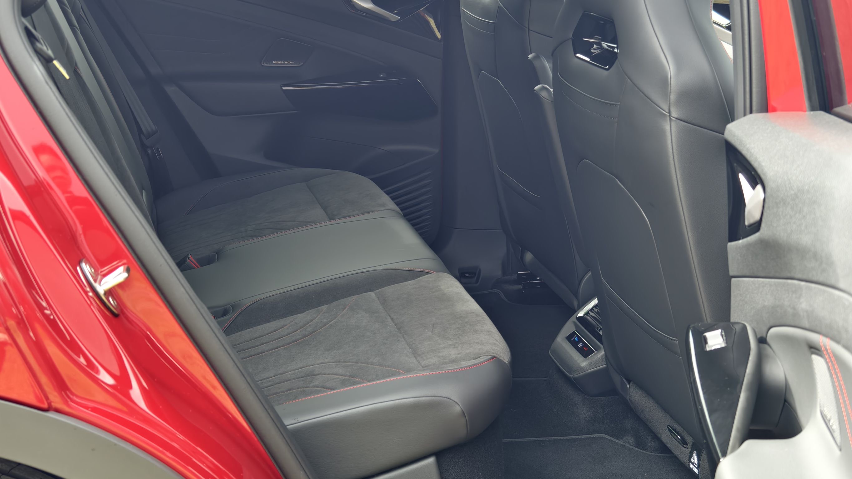就乘坐來說,ID.4並不會讓你感覺到明顯的底盤電池厚度,上車門檻比一般SUV略低,一般身材乘員不會有頭部侷促的問題。後排腿部空間同樣寬敞,座椅也可以進行多樣的調整變化,ID.5受限於向後傾斜的車頂,身材高大的在後座可能會覺得頭部有些壓迫。