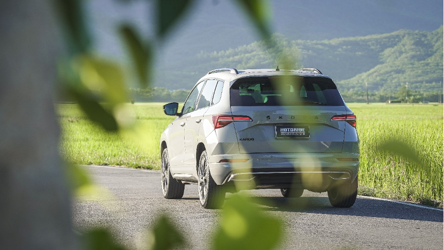在山路上開Karoq奔馳了一小段,勾起我一段時間前試駕VW T-Roc 280(126.8萬元)跟330TSI R-Line(148.8萬元)的記憶,儘管330有四驅且馬力達190hp,但實際上我更傾向車身輕巧、底盤特性單純的280版本。而今天試駕的Karoq Sportline動力等同280版本,但很明顯的Karoq在安全配備、運動化配備與舒適配備上都更勝一籌,搭載18吋胎框的Sportline很明顯地朝運動化靠攏,動力輸出特性與加速能力差異不大,但Skoda在變速箱程式設定上有自己的一套,在檔位邏輯上比T-Roc更加積極,山路的操控表現也展現歐洲車一貫的紮實與從容。當然,身為性能愛好者,我們也期待2.0T四驅、後多連桿加上CCD主動懸吊的版本,但那價格勢必要去到150萬元的水準,不在我們今天的討論範圍。