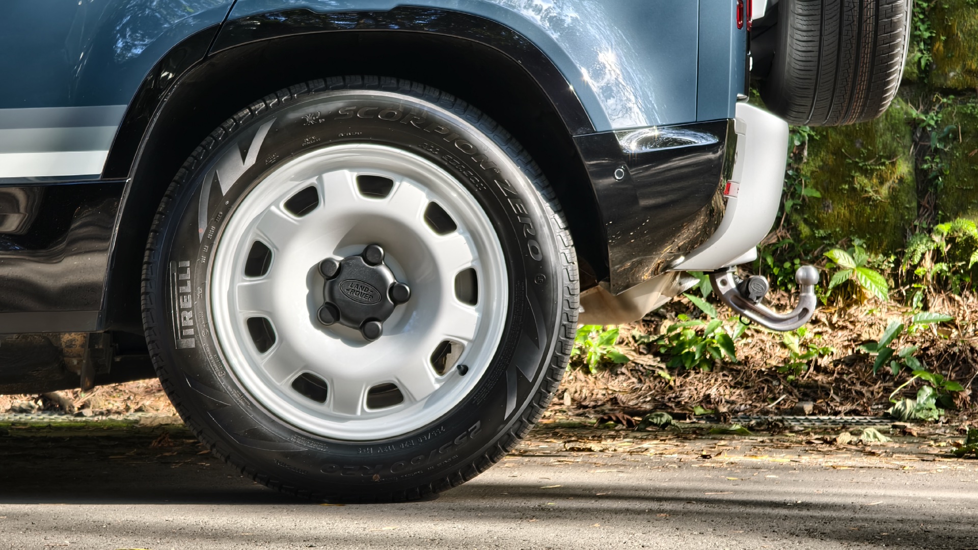 除了動力有感升級,County套件的加持也彷彿代我們回到當年的Solihull廠區,經典的藍白色搭配,輔以復古鐵圈造型的20吋鋁圈,外觀的第一印象頗像過去在Solihull廠區穿梭的Shuttle Bus。County套件的靈感來自80年代,用藍白/白藍對比色彰顯視覺上的層次感,車側三層County拉花加上Defender本身融合復古與現代的線條,第一眼就勾起濃濃的懷舊感。