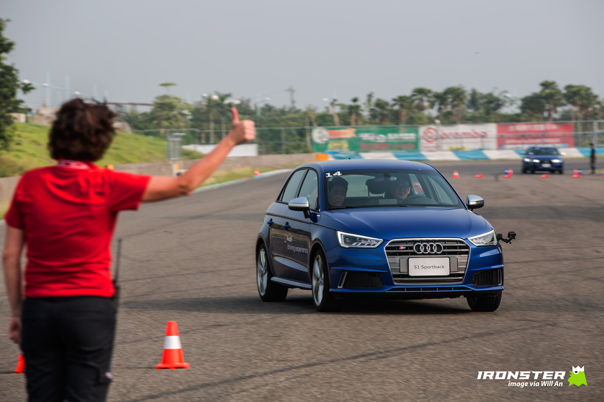 原本頗為無聊的繞錐體驗,原廠熱愛用RS Q3、SQ5等車款,讓我們感受休旅車也有著優異的操控性,但是當場上唯一一輛手排S1 Sportback被安插在這個關卡時,每個人都是宛如剛剛遇到綺夢般,笑的合不攏嘴下車。