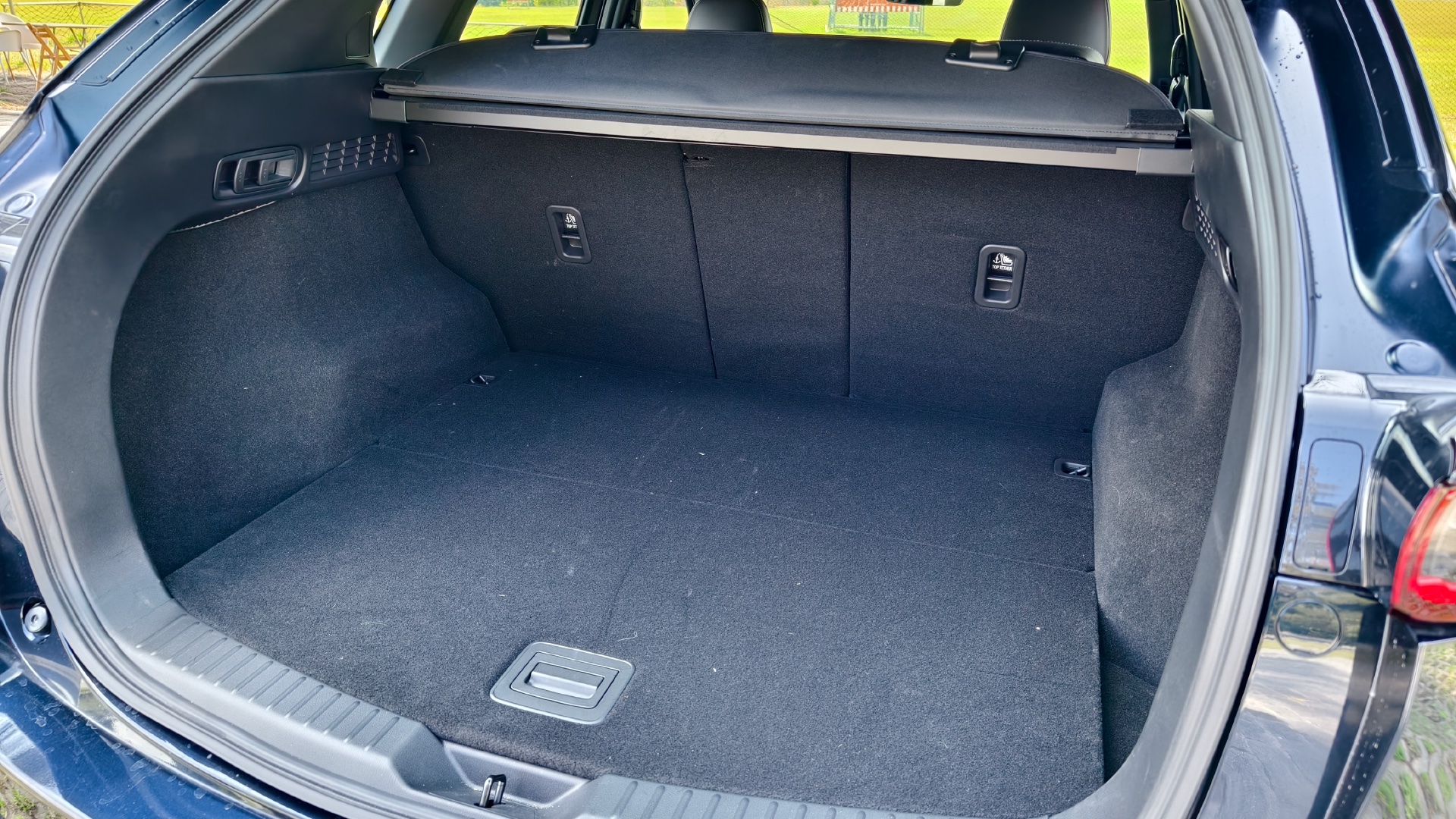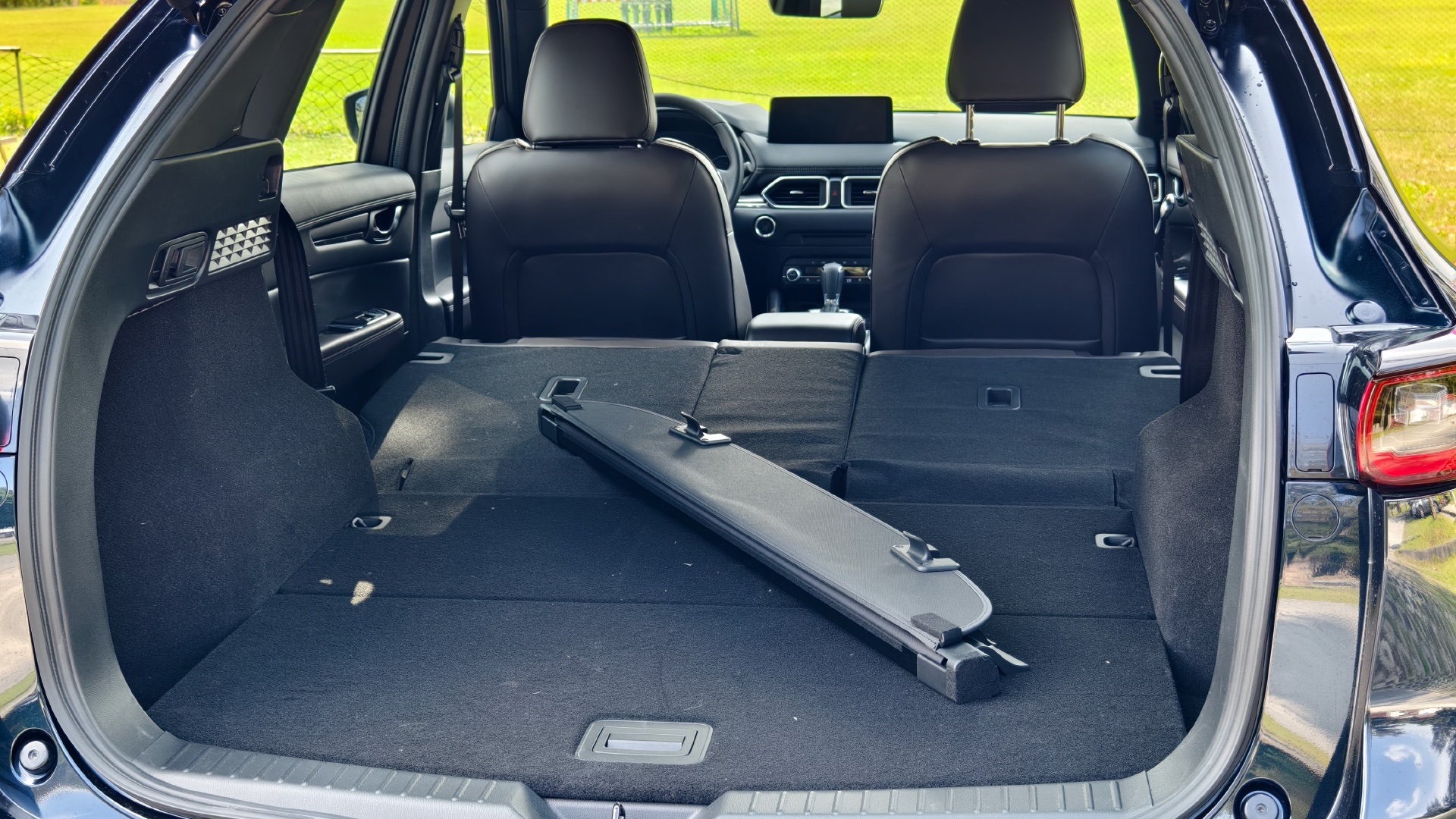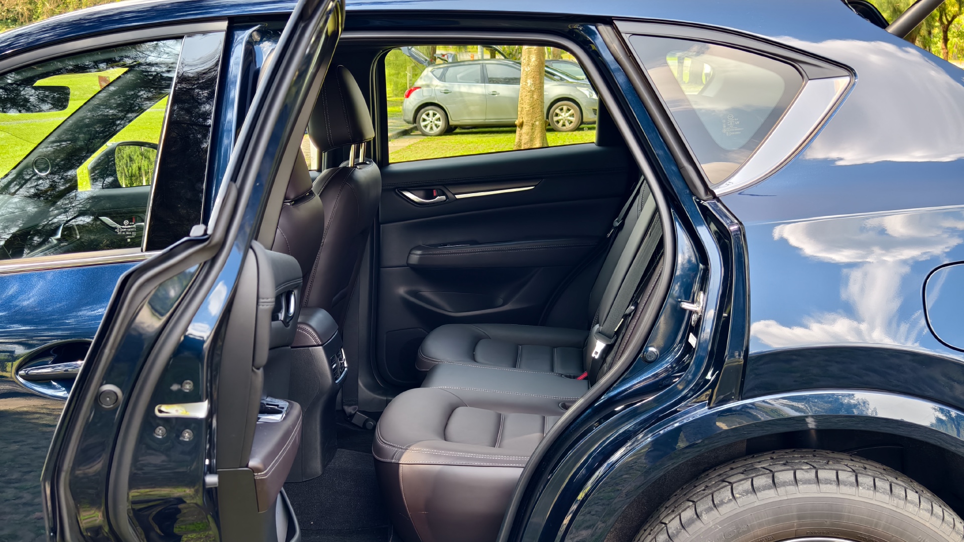 跟多數中型SUV相比,CX-5身形不會特別大,體長4575mm,軸距2700mm,空間不是最大,但保證足夠一般成人舒適乘坐,以我173cm身高為例,膝部至少留有一個半拳頭以上的空間,值得一提的是座墊的支撐性很好,前後排的腿托均較一般SUV略長,泡綿填充也相對紮實,乘坐舒適性與包覆性都有相當高水準。行李廂則有著寬大平整的空間,並且提供許多體貼戶外玩家的貼心設計。