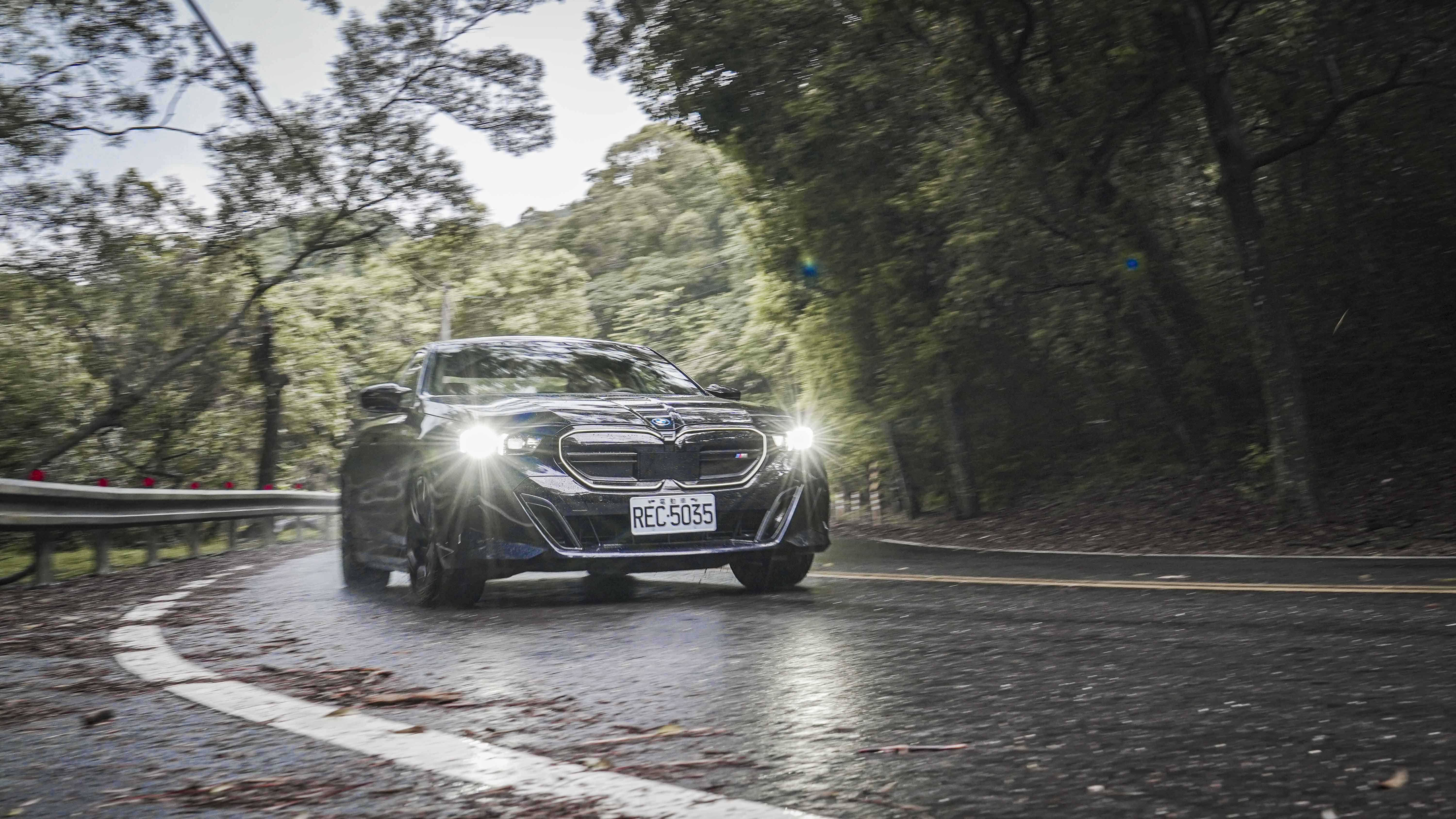 出乎意料的是,在性能模式下的i5 M60展現出非常緊緻的車輛設定,最明顯的是電門更加靈敏,轉向力回饋增強,強化的初段阻尼讓快速轉向時車頭的下沉得到快速抑制,手感變得更加直接,當然,後軸轉向絕對是i5在急彎中頭過身就過的一大利器,性能模式下後軸的推力變得更加積極,加上主動防傾桿彷彿在車尾外滑時提升了後輪距與傾角,這讓外側輪微微一沉,車身便俐落地劃過每個彎道。