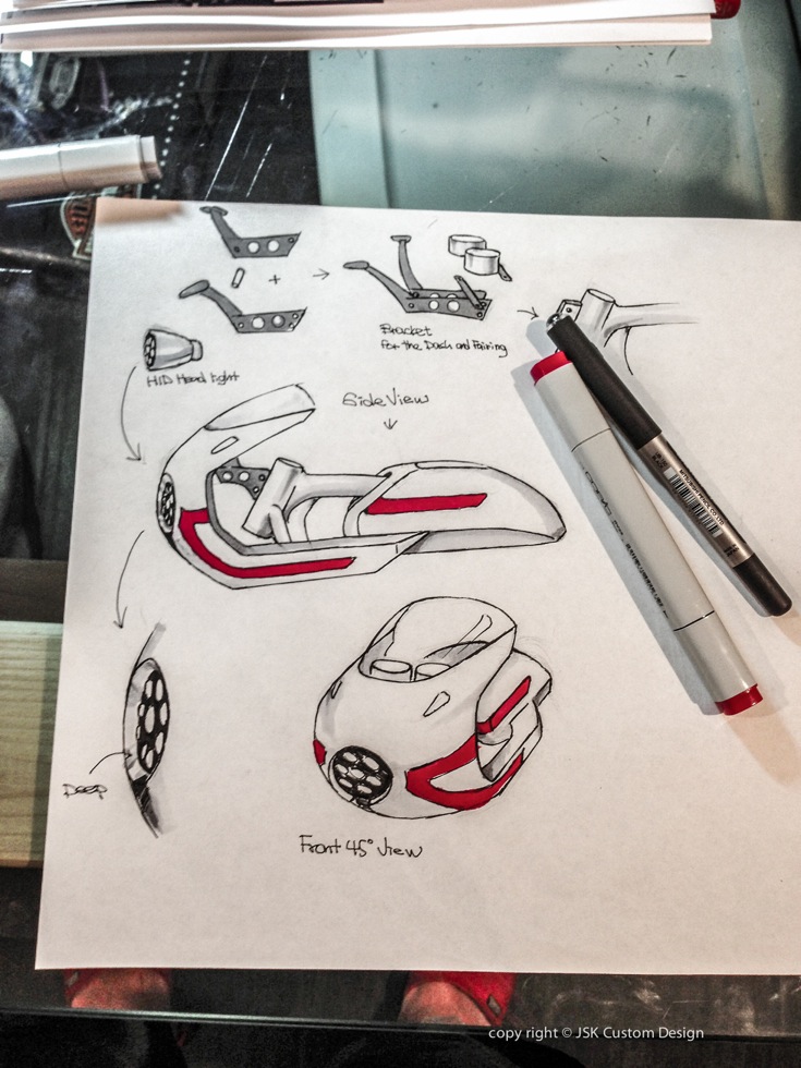 要設計一台摩托車不是說自己認為喜歡,就可以隨便想怎麼做就怎麼做,當然,就某方面成分是這樣說沒有錯,因為是自己的作品。 但是今天並不是沒有主題的創作,今天要設計的作品是關乎歷史的傳承,然後創新。自己一個人看的爽,別人沒有辦法接受跟認同,它可以成為一件藝術家的作品,但絕對稱不上設計,還有,創新跟突兀標新立異,往往也只有一線之隔。