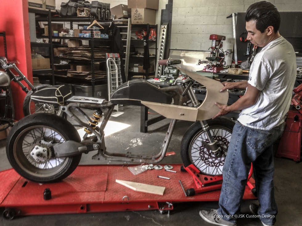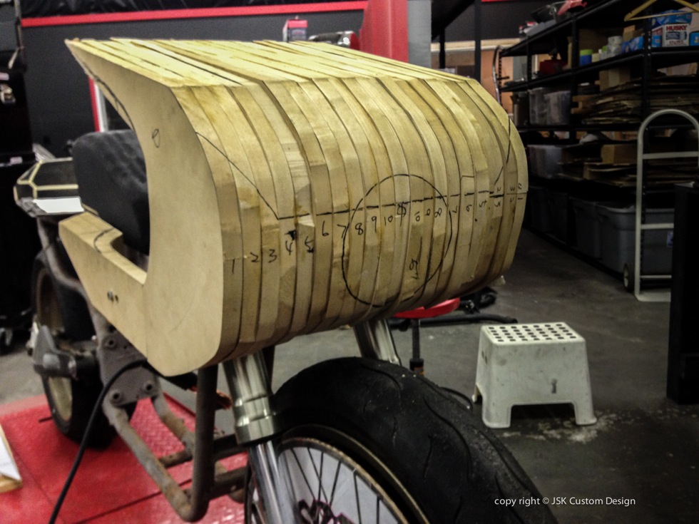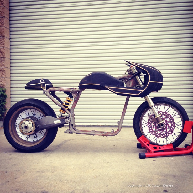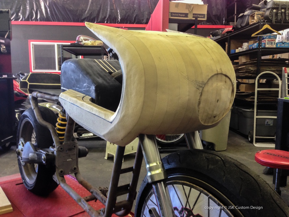 在美國80年代末初期,因為日本車躍進,日本車的省油及車身簡潔俐落的線條,使得美國車一時找不到自己的定位,當時90年代的美國車線條又直又大又方,想要模仿所謂的前衛及科技感,但是看起來卻又笨又重。 一直到了2000年的初期,一些廠商才發現美國60至70年代的優美車身線條,才是所謂的美國精神,也就是我們現在電影變形金剛所看到車子,幾乎都是fallow 60~70年代的老線條,用新的製造方法跟新的素材製造而成。美國決定做自己,找回自己的定位,事實也證明,車子大賣。 我也是追朔其精神來設計這一台我所認為的cafe racer該有的樣貌。 "老線條,新元素",我自己把其稱之為Modern Retro Style。當初會想要做這一台車的原因,是因為坊間太多人以為把座椅換成單人座,或者是把車身尾巴弄的長得像是鴨子的屁股,就說自己是cafe racer,我不喜歡做別人已經做過的事情,所以我想要做一台以我自己為觀點的cafeRacer。