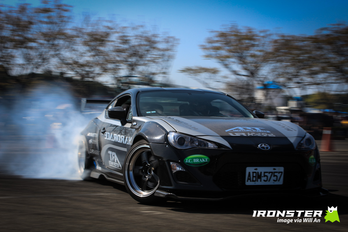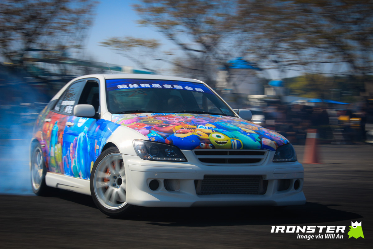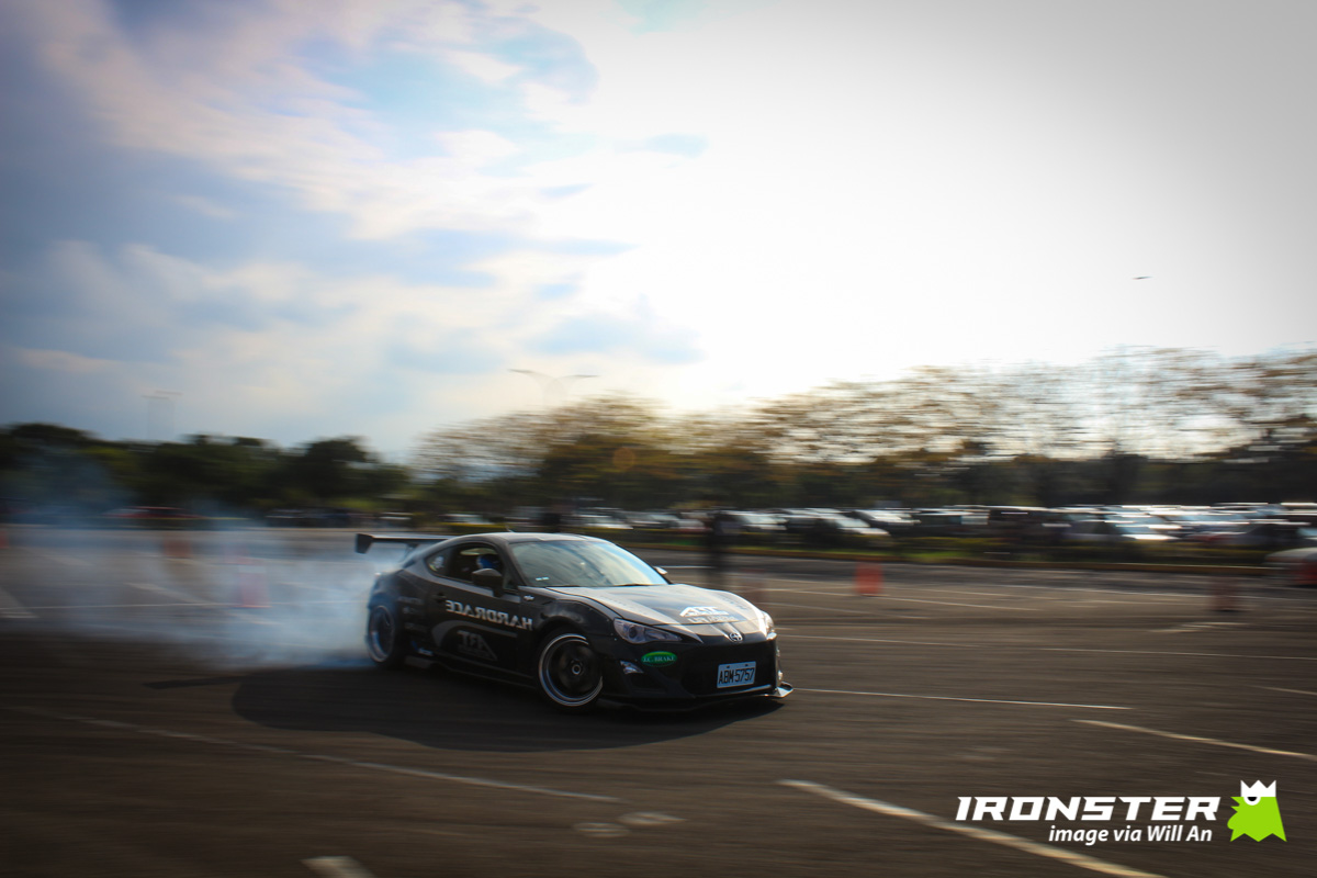 而說到台灣的漂移起源,大概只比房車賽運動晚幾年而已。在十多年前就投入甩尾運動的黃立綱(布袋戲國寶大師黃俊雄的孫子),應該算是台灣第一代的甩尾車手。而他所創立的『慣性橫移甩尾團隊』,在台灣目前有十多支大小甩尾車隊中,應該算是這十多年來投入台灣甩尾運動最多的車隊之一。就像這次在六福村大停車場所舉辦的這場走行會,就是由『中華賽車競速及競技協會』與『慣性橫移甩尾團隊』聯手舉辦的。而這個『中華賽車競速及競技協會』的盧理事長本身並不是賽車手,只是單純喜歡大家在一起玩車的感覺,所以常年來他就算不時自掏腰包,但他還是致力推廣台灣各種漂移賽事,像是舉辦多年的大江盃漂移賽等等。